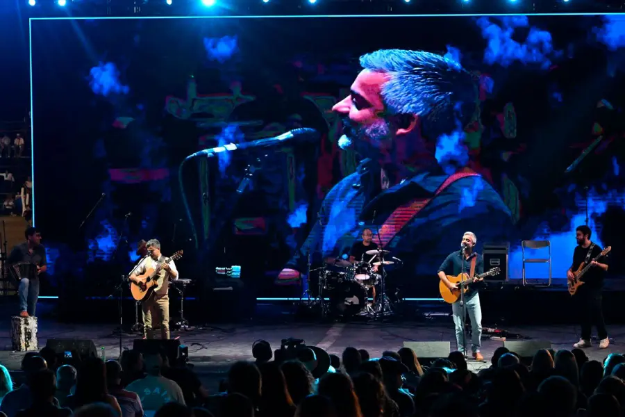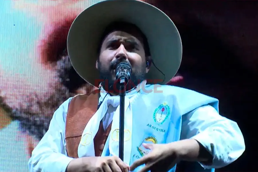 A las 2.58 de este martes, comenzó la animada presentación de Lázaro Caballero con ritmos norteños y del litoral. Una chacarera hizo encender al público en el arranque de su actuación. El músico formoseño cuenta con una docena de músicos sobre el escenario y la preponderancia la tienen las cuerdas con varias guitarras y violines.