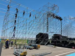 Imágenes a las que accedió Elonce muestran el armado del escenario para celebrar los 25 años de la Fiesta de Disfraces en el Autódromo de San Nicolás. La FDD fue reprogramada tras el temporal y los organizadores confirmaron que las entradas siguen vigentes.
