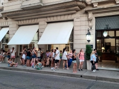Desde la tarde, las “abeleras” lo aguardaban en la puerta del hotel en el que se hospeda en La Histórica. El músico, fiel a sus fanáticas, cuando salió hacia el predio Multieventos para la prueba de sonido, se fotografió con algunas de ellas, pudo saber Elonce.