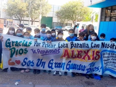 En medio de la emoción, una bandera resumió el sentimiento de quienes acompañaron a Alexis: “Gracias Dios por pelear esta batalla con nosotros. Te amamos Alexis. Sos un gran guerrero”. La frase, sostenida junto a la foto del niño en la puerta del hospital, se convirtió en la síntesis de una historia de lucha y superación.
