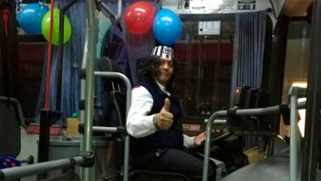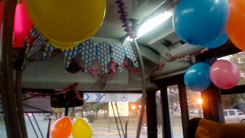 Este miércoles sorprendió a sus pasajeros con el colectivo todo adornado. El chofer colgó guirnaldas, infló globos de todos colores y se puso una gorra de Talleres para festejar su cumpleaños "sobre ruedas" mientras realizaba su trabajo a bordo del "cole".