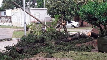 Una de las localidades afectadas por la tormenta fue Santa Elena, allí se registraron caída de árboles debido a las intensas ráfagas de viento y fuertes lluvias.