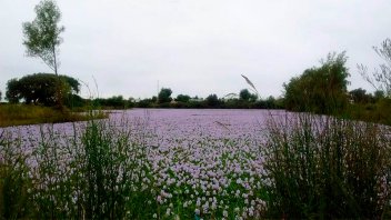 Las llamativas fotografías fueron tomadas en el delta entrerriano por un trabajador del INTA, cuando se encontraba esta semana <b>en la zona de Villa Paranacito. Imágenes de los camalotes florecidos que embellecen la costa</b>.