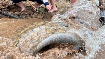 En el momento que tomaron dimensión del tamaño del animal, se vieron obligados a solicitar ayuda para sacarlo del agua.