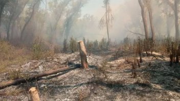 Un grupo de isleños trabajó denodadamente este viernes por la tarde, en la previa de la Navidad, para intentar apagar el fuego en las islas, que amenazaba con expandirse hacia un sector de viviendas. Las llamas avanzan en la zona conocida como Paso Destilería, a unos 700 metros al norte del puente Rosario Victoria, y el humo fue visible desde Rosario.