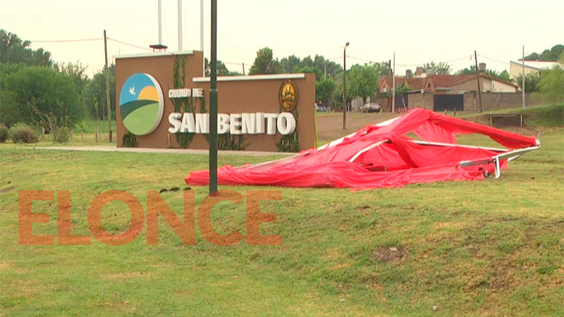 El viento fuerte duró unos 15 minutos en San Benito y en este tiempo se voló el techo de unos baños de un complejo deportivo; cayeron postes de luz y además se desarmó una estructura. Afortunadamente no hubo daños en viviendas.