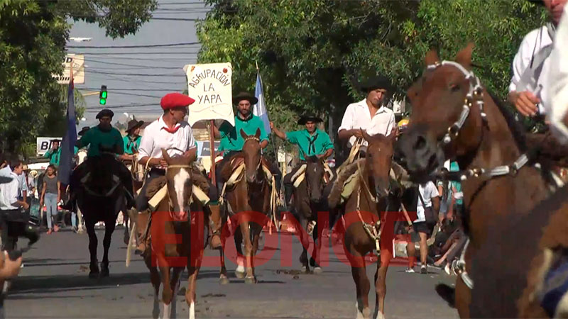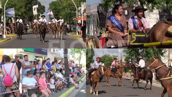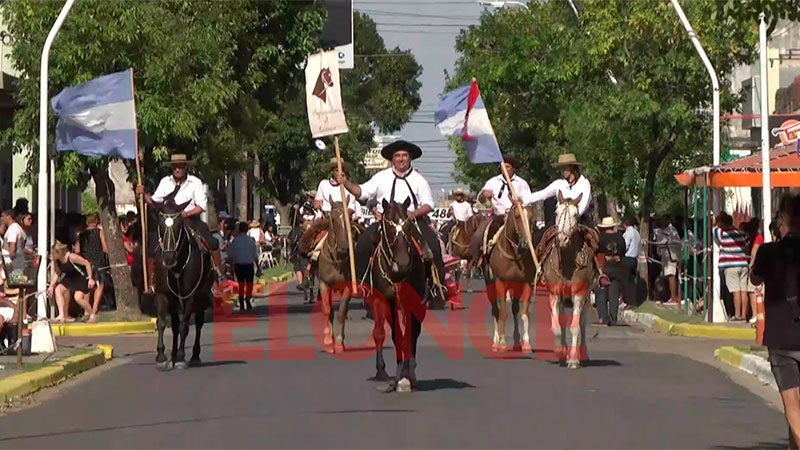 Bajo una jornada agobiante, gran cantidad de personas acompañaron el desfile por las calles céntricas de la localidad con mate en mano. Vecinos y visitantes se acercaron desde muy temprano a la ciudad para vivir este colorido espectáculo que brindan jinetes y sus caballos.