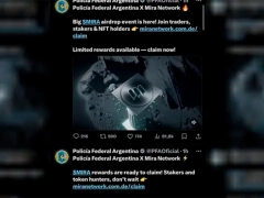 Las publicaciones difundidas desde la cuenta oficial de la PFA incluían mensajes como: “Policía Federal Argentina Mira Network, Big $MIRA airdrop event is here! Join traders, stakers & NFT holders. Limited rewards available — claim now!”.