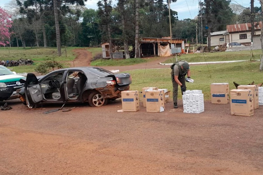 Dos horas después, los uniformados del Escuadrón 12 "Bernardo de Irigoyen" detectaron un vehículo volcado sobre la banquina que poseía 6.530 atados de cigarrillos.