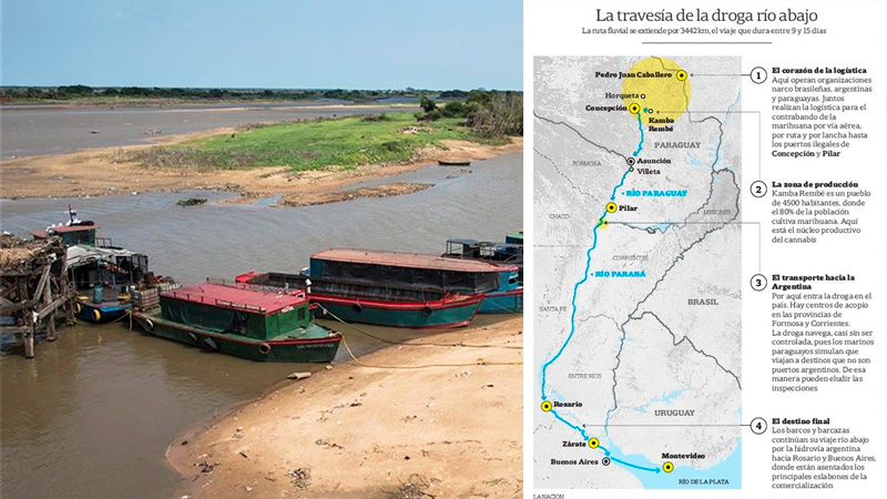 Afirman que "los tripulantes de barcos y barcazas que navegan la Hidrovía son tentados con grandes sumas de dinero para trasladar río abajo la marihuana que se produce en Paraguay". Son 10.000 dólares por un viaje.