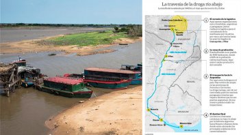 En esa logística es esencial la Hidrovía, el sistema de navegación por los ríos Paraguay, Paraná y sus afluentes que comienza en Puerto Cáceres -en el límite entre Paraguay y Brasil- y termina en Nueva Palmira, Uruguay. Son 3442 kilómetros de vía fluvial navegable por los que se transporta todo tipo de mercancías, entre ellas, obviamente, drogas.