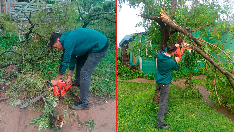 El personal trabaja con motosierras para extraer y limpiar el predio, pero en tanto se desarrollen estas tareas los caminos de acceso y tránsito interno se encuentran vallados e intransitables, por lo que se solicita a la población no acercarse al parque.