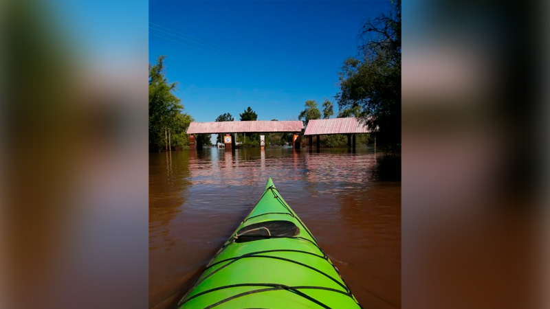 Por otro lado, un kayakista se sumergió en el balneario y registró cómo las aguas cubrieron las áreas comunes, según publicó La pirámide.