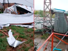 Según relataron lectores que enviaron fotografías del lugar, la combinación de viento y lluvia generó daños visibles en estructuras del establecimiento, con chapas desprendidas y sectores afectados por la violencia del fenómeno meteorológico.