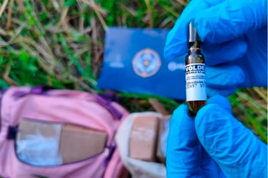 Al efectuar la requisa de los elementos descartados, se verificó que se trataba de un bolso deportivo y una bolsa, los cuales en su interior contenían cajas con un total de 200 ampollas de Fentanilo, de procedencia extranjera.