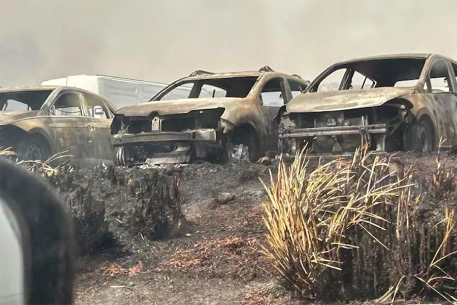 Las primeras señales se detectaron porque la camioneta que sufrió el desperfecto ardió cerca de una zona de pastizales y el fuego provocó daños en otros 14 vehículos.