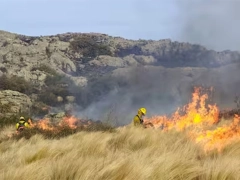 Aunque controlado en un 70% según los últimos datos oficiales, continúa el incendio en el Parque Nacional Quebrada del Condorito, en el noroeste de Córdoba. Las condiciones meteorológicas complican el trabajo de los bomberos ya que el calor es intenso y hay vientos.