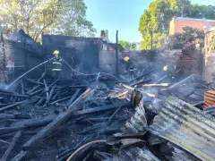 Varias dotaciones de Bomberos Voluntarios de Gualeguaychú intervinieron en el incendio registrado en una vivienda que quedó completamente destruida.