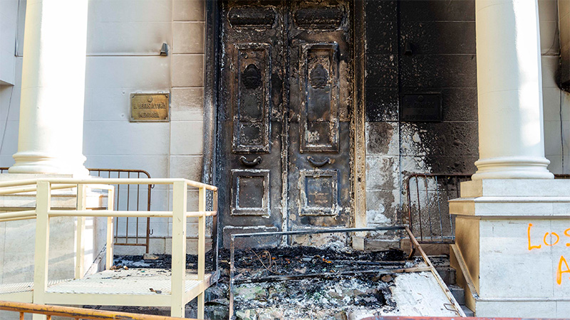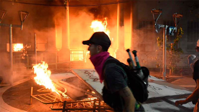 Este sábado en conferencia de prensa, el ministro de Seguridad provincial, Raúl Levrino, dijo que las personas que produjeron los disturbios "quemaron símbolos de la democracia".