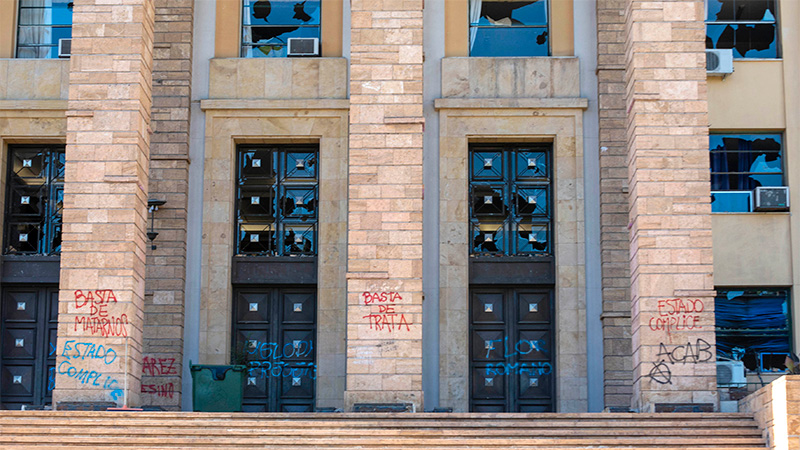 Durante la marcha de este viernes, los inmuebles que se vieron afectados por los manifestantes pertenecen a los tres poderes de la provincia.