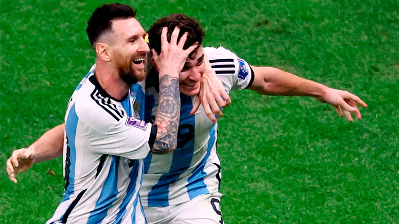 Una imagen muestra a un Julián Álvarez de unos 12 años junto a Lionel Messi en la etapa que Alejandro Sabella conducía el seleccionado nacional. Por aquellos años, quedó registrado en un video una entrevista con el pequeño que confesaba que su sueño era jugar un mundial. Y no sólo que el mismo se hizo realidad, sino que se convirtió en el socio de dentro de la cancha de quien hace apenas ocho años era su ídolo. Y el cordobés fue pieza central, con dos tantos en la semifinal ante Croacia. Además, le hicieron el penal que luego convirtió el 10 para iniciar el camino del triunfo.