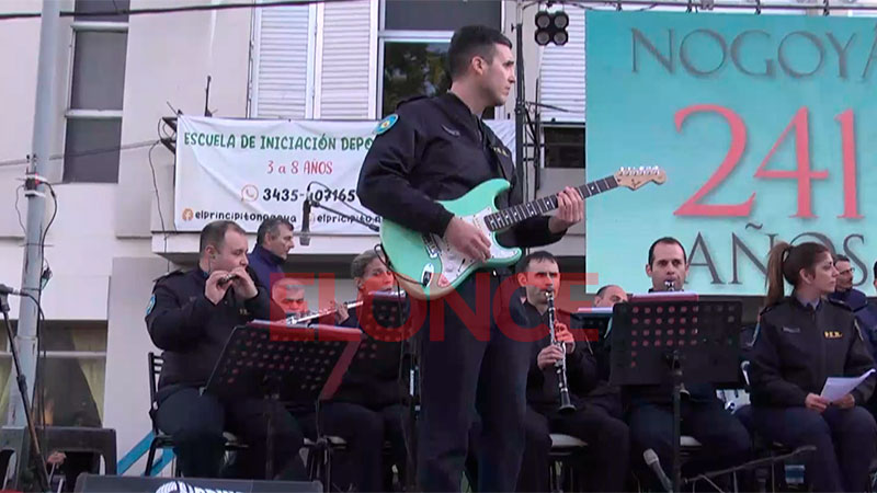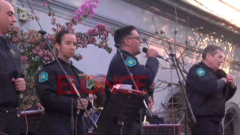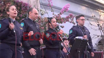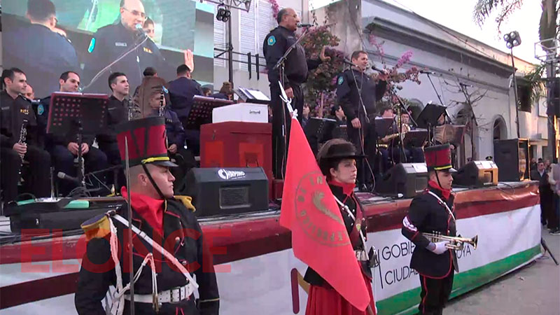 La banda de la Policía de Entre Ríos llevó a cabo un número musical ante la presencia del público expectante que anteriormente disfrutó del desfile tradicionalista y la misa.