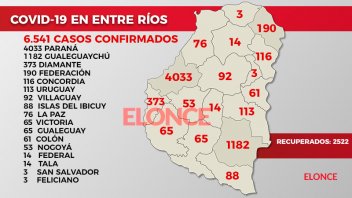 De ese modo, <b>en la provincia son 6.541 los casos confirmados</b>; de los cuales 3916 son casos activos, <b>2522 son pacientes recuperados</b> y lamentablemente, fallecieron 103 personas con Covid-19 en territorio entrerriano.