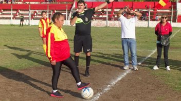 Patricia Barboza, que juega en el club Unión de Villa Jardín, fue la encargada de dar el puntapié inicial del primer torneo femenino de su localidad, que por cierto, lleva su nombre.