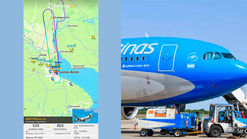 Así fue el recorrido del avión de Aerolíneas Argentinas que tuvo que volver a Aeroparque. (Foto: TN)