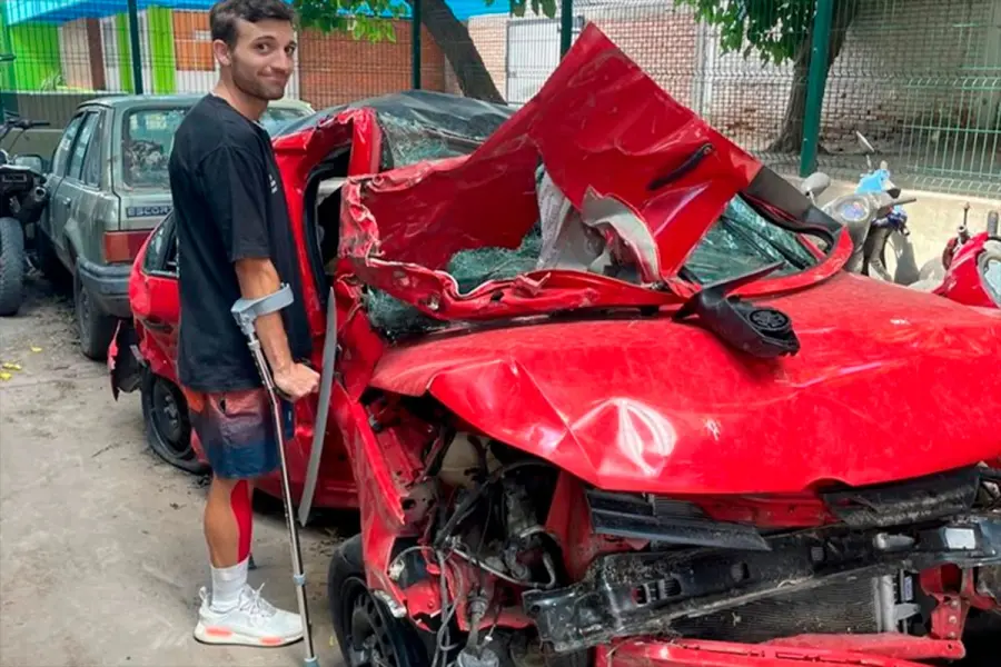 Durante esa semana, su vida había cambiado para siempre. El accidente ocurrió en la madrugada del lunes 9 de diciembre, sobre la ruta 7, en el ingreso a Mendoza. Viajaba junto a su pareja para pasar unos días de vacaciones cuando un violento choque lo dejó gravemente herido. La pelvis estaba fracturada y una de sus piernas había quedado comprometida de manera irreversible. “El accidente me apretó tanto la arteria femoral que no tenía circulación sanguínea con esa pierna”, explicó más tarde.