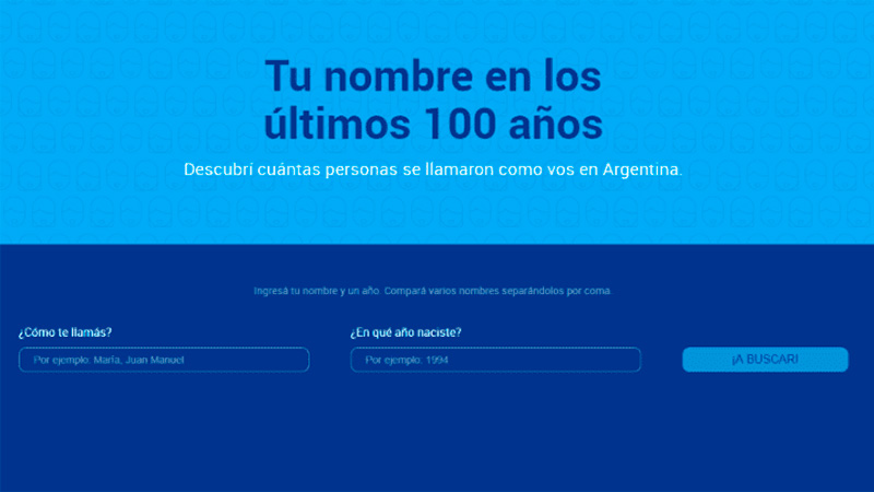 El gobierno nacional tiene una página donde podés consultar cuántas personas se llaman igual que vos y qué tan popular ha sido tu nombre a lo largo <a href='http://nombres.historias.datos.gob.ar/' target='_blank'>del tiempo. La iniciativa se llama "Tu nombre en los últimos 100 años".</a>
