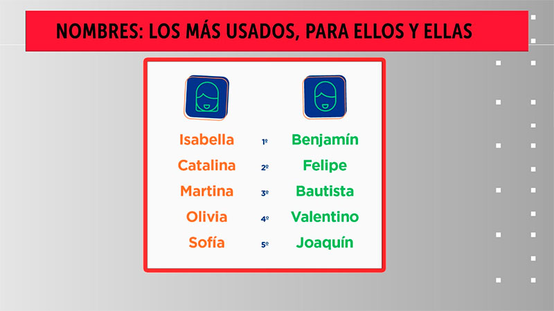 Por ejemplo, entre 2010 y 2015, el nombre de mujer más elegido fue Martina; más específicamente, lo anotaron más de 17 mil personas; y el de varón, Benjamín: en cinco años nacieron 23.197 Benjamines.