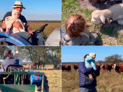 Victoria, de 29 años, contó que la familia suele pasar los fines de semana en el campo ubicado en Chajarí, donde su esposo Maxi trabaja. La escena ocurrió justamente mientras él terminaba de cargar herramientas para emprender el regreso. “Es una locura lo que le encanta el campo. A la gente le sorprendió mucho la reacción de Clarita y a nosotros nos llenó de amor”, relató.