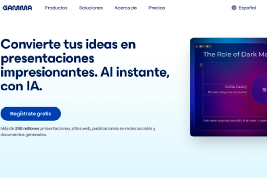 Gamma está diseñado para quienes necesitan crear diapositivas y documentos profesionales sin invertir horas en el diseño. Con una simple instrucción, puede generar una presentación completa, incluyendo diseños, elementos visuales y texto. Esto lo convierte en una herramienta que ahorra una enorme cantidad de tiempo a estudiantes, educadores y profesionales.