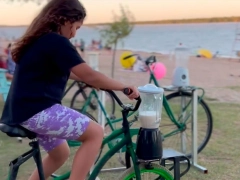 Las Bicilicuadoras causan furor en Entre Ríos. Una novedad llamó la atención la semana pasada al inaugurar uno de los puestos de venta al público y turistas, ubicados en la Playa Norte, de la ciudad de Colón. Se trata de una manera más saludable y creativa de disfrutar de licuados y jugos en un entorno relacionado con las vacaciones y el verano. Se trata de la “Bicilicuadora”.