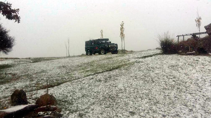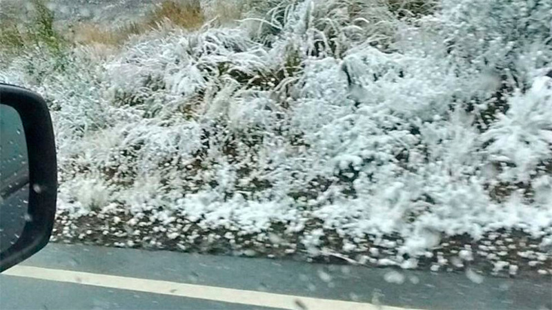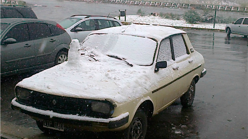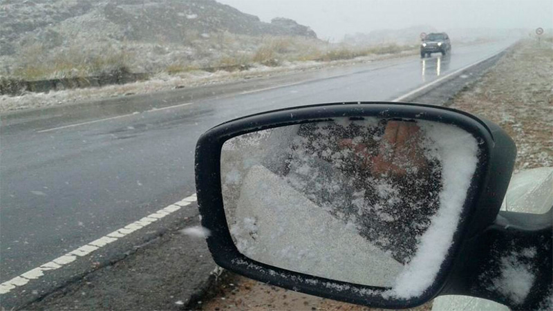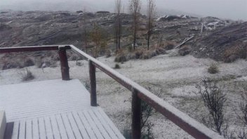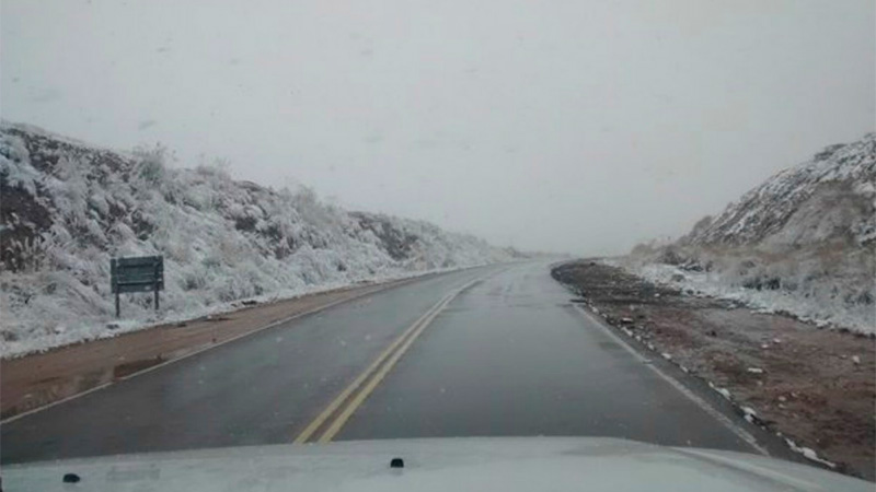 Los primeros copos comenzaron a caer el lunes temprano en el kilómetro 30, hacia El Cóndor.