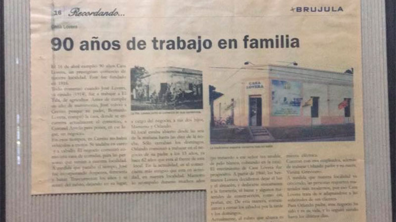 Casa Lovera es sinónimo de historia y familia, para todos los pobladores de Cerrito y la región. “El local sigue siendo atendido por sus propios dueños, va pasando de generación en generación”, dijo Vanina Grinovero a Elonce al recodar que sus hijos, Valentino Lovera, de 21 años, y Giovanni Lovera, de 18 años, son los que se hacen cargo del local.