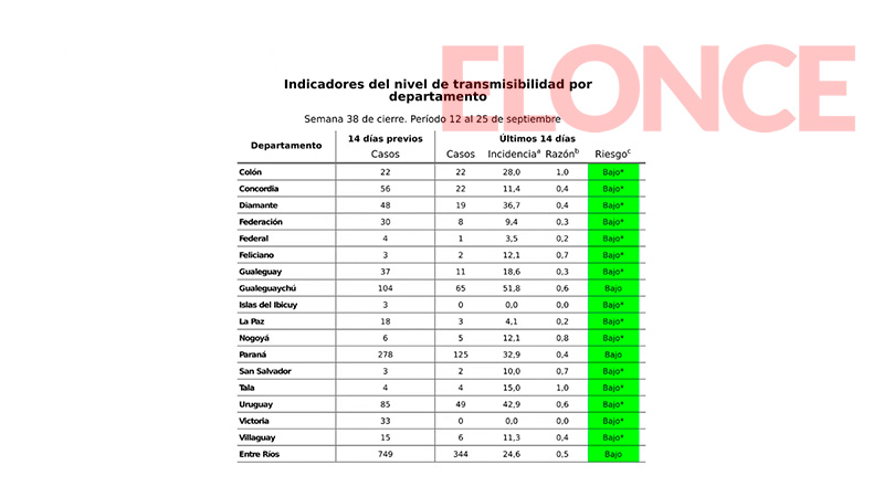"A la fecha, en todos los departamentos, el número de contagios es de bajo riesgo epidemiológico, y en la mayoría descendió el número de casos de Covid-19”, informó.