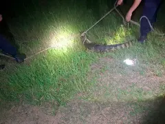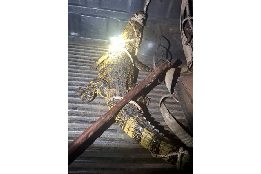 Se trató de un yacaré negro de 1,50 metros que merodeaba sobre la cinta asfáltica, en la ruta de acceso a Benito Legerén (Concordia). Video del momento de la liberación del animal.
