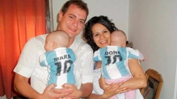 Las mellizas nacieron en 2011. Ahora el padre tendrá otro hijo, un varón, y para seguir con la tradición y la pasión por el ex futbolista, eligió un nombre especial para homenajearlo.