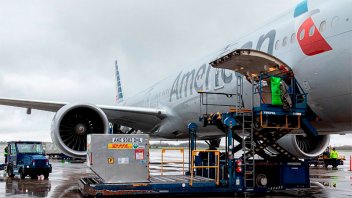 El cargamento con las primeras 100.620 dosis, del total de 20 millones previstas para este año de ese laboratorio, arribó a las 15.11 al Aeropuerto Internacional de Ezeiza, en el vuelvo AA991 de American Airlines.