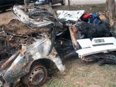 Las personas que eran oriundas de Paraná, viajaban en un Fiat Tipo 1.6, color blanco, domino SBG 458, que se prendió fuego al despistarse de la ruta y estrellarse contra un árbol.