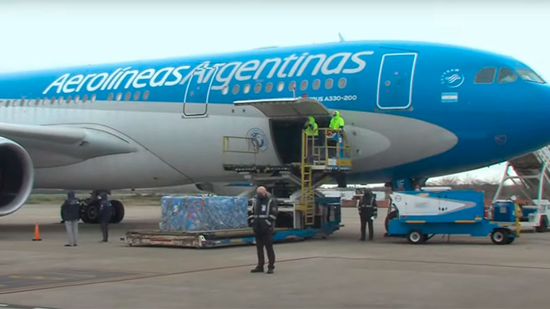 Un vuelo de Aerolíneas Argentinas, proveniente de Moscú, llegó este lunes a la tarde con 400.000 dosis del componente 2 de la Sputnik V, en tanto que está previsto que alrededor de las 21 arriben más de 200 mil dosis de AstraZeneca