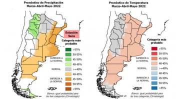 Mientras tanto se estima mayor probabilidad de ocurrencia de temperatura media normal o superior a la normal sobre el Litoral, (incluida Entre Ríos), las provincias del norte, Córdoba, Santa Fe, La Pampa, Buenos Aires y el centro y norte de Patagonia.