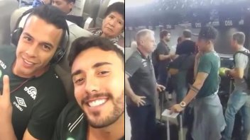 En las imágenes se ve a parte de los jugadores y del cuerpo técnico esperando en la zona de facturación a tomar el vuelo después de que fueran obligados a cambiar de aeronave.