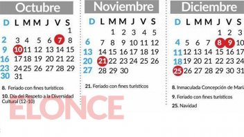 En cuanto a los feriados con fines turísticos, el decreto estableció como fechas el 7 de octubre, 21 de noviembre y 9 de diciembre.