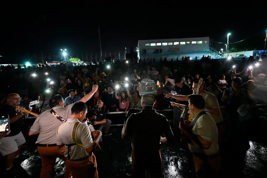Un pequeño grupo de personas decidió quedarse, desafiando la lluvia persistente. Fue entonces cuando ocurrió el gesto que transformó una suspensión forzada en un cierre épico. Sin amplificadores ni micrófonos, y guiados apenas por la luz de algunos celulares, Los Majestuosos del Chamamé se acercaron a las gradas y comenzaron a tocar a pulmón.