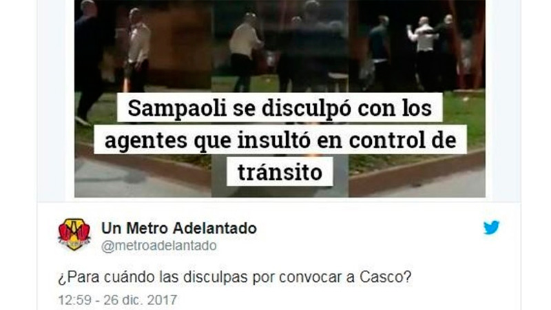 Es probable que Jorge Sampaoli soñara con terminar el 2017 siendo noticia. Y también que se hablara del cambio que había generado en la Selección. Nunca debe haber pensado que iba a ocupar tanto tiempo y espacio en los medios por haberse enfrentado a un agente de tránsito. Pero así fue.