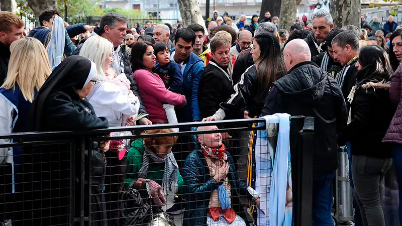 Muchos saben que no podrán entrar. Se quedan contra la reja, desde donde, con suerte, podrán escuchar a Leda y verla de lejos. Ella no los defraudó: a media tarde, se acercó para saludarlos y recibir sus ruegos. Como los de Ángela, de 58 años, la abuela de Juan Martín, de 9, que tiene autismo, retraso madurativo y aún no habla. Se aferra a la foto del niño, con la esperanza que Leda la toque. Está con Claudio, llegó desde Pilar y cuenta que se casó allí mismo, en Lourdes. “Tenemos mucha angustia. Juan Martín va a una escuela especial, la mamá es maestra y tiene IOMA, así que conseguir turnos se le hace difícil”. Es que todo tiene que ver con todo.