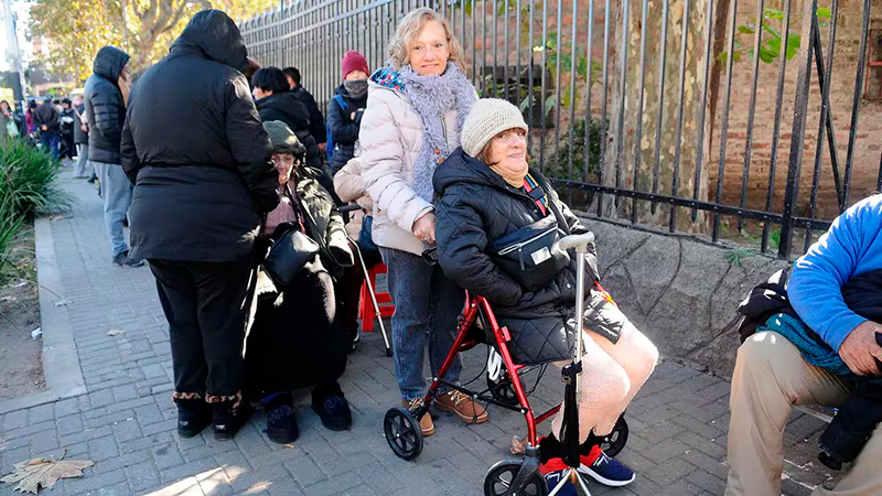 Nilda, de 56, está desde ayer junto a su hermana. Vinieron desde Hurlingham a pedir, sobre todo, por su madre, Elsa, que tiene 72, no puede caminar por la rodilla y se cubre como puede para soportar el frío. La mujer se atiende por PAMI, y fue un sobrino, que vive en Avellaneda, quien les sugirió ver a Leda.